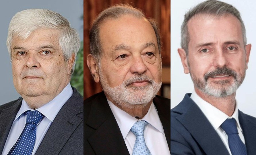 Juan Hurtado Vicuña, presidente de Entel; Carlos Slim, presidente de América Móvil; y Marc Murtra, presidente de Telefónica
