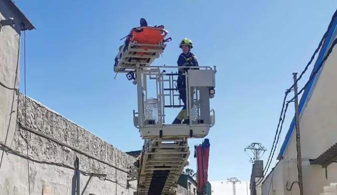 El antepecho de una terraza se desplomó y dejó atrapados a los tres obreros, lo que obligó a activar un dispositivo de emergencia para garantizar su rescate en condiciones de seguridad.