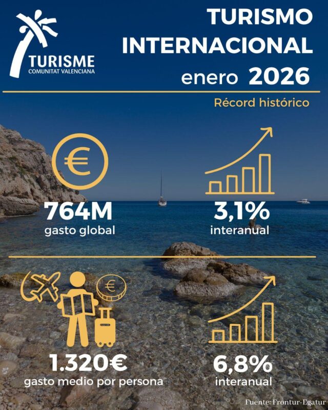 La Comunitat Valenciana ha alcanzado un hito en su historia turística al registrar un gasto total de 764 millones de euros durante el mes de enero. Esta cifra representa un incremento del 3,1% en comparación con el mismo mes del año anterior, según datos recientes del Instituto Nacional de Estadística (INE).