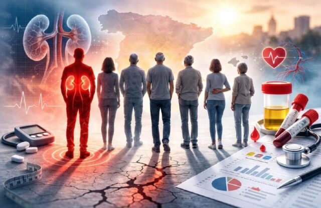 Uno de los aspectos más relevantes es la interconexión entre el sistema renal, cardiovascular y metabólico. La hipertensión y la diabetes tipo 2 —principal causa de ERC en España— están estrechamente relacionadas con el deterioro renal.