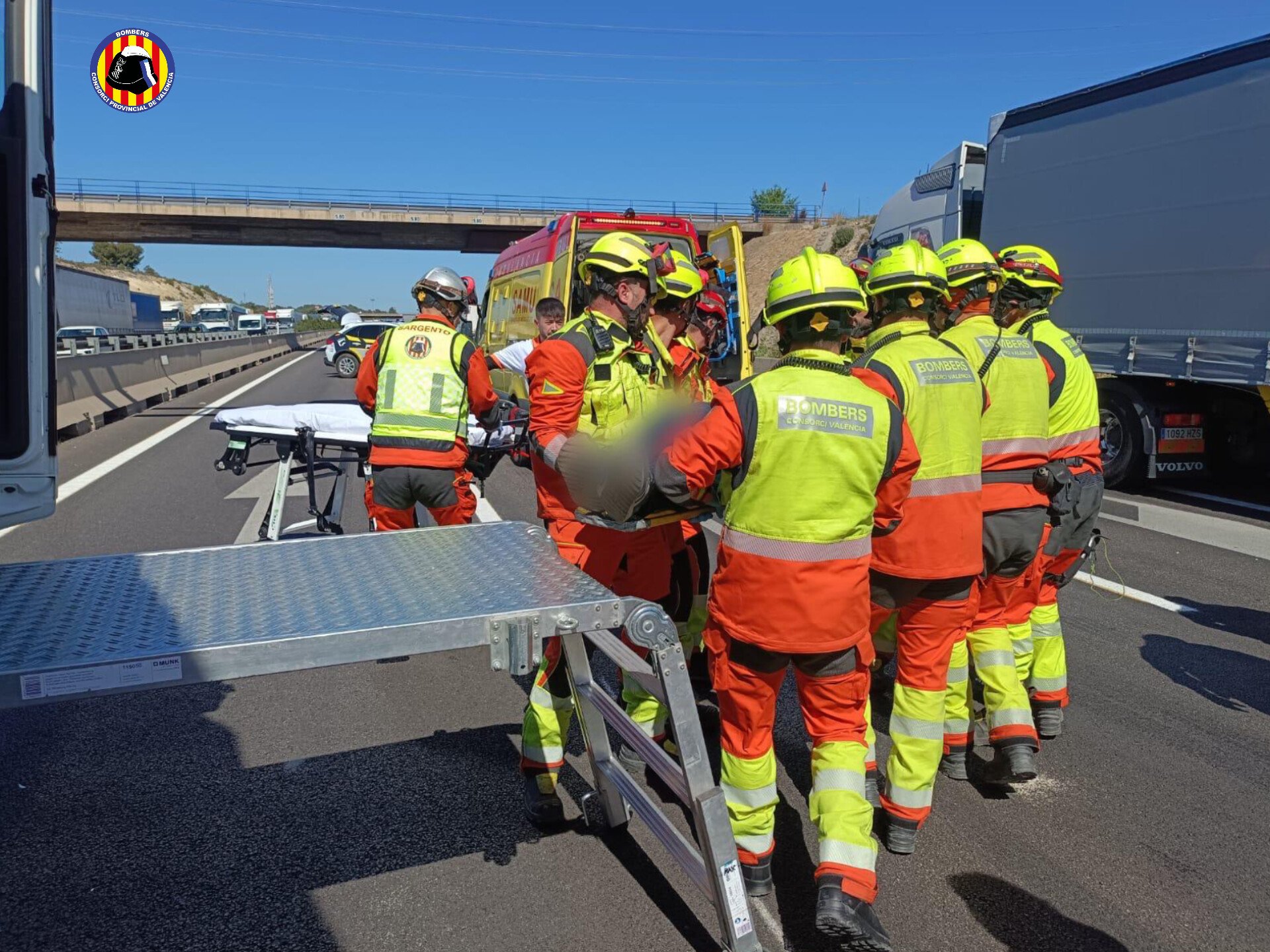 Hasta el lugar se desplazaron efectivos del Consorcio Provincial de Bomberos, con dotaciones procedentes de los parques de Paterna y Burjassot, además de un sargento del parque de Paterna. Los bomberos llevaron a cabo la excarcelación del conductor atrapado, una operación que requiere precisión y coordinación para evitar agravar las posibles lesiones.